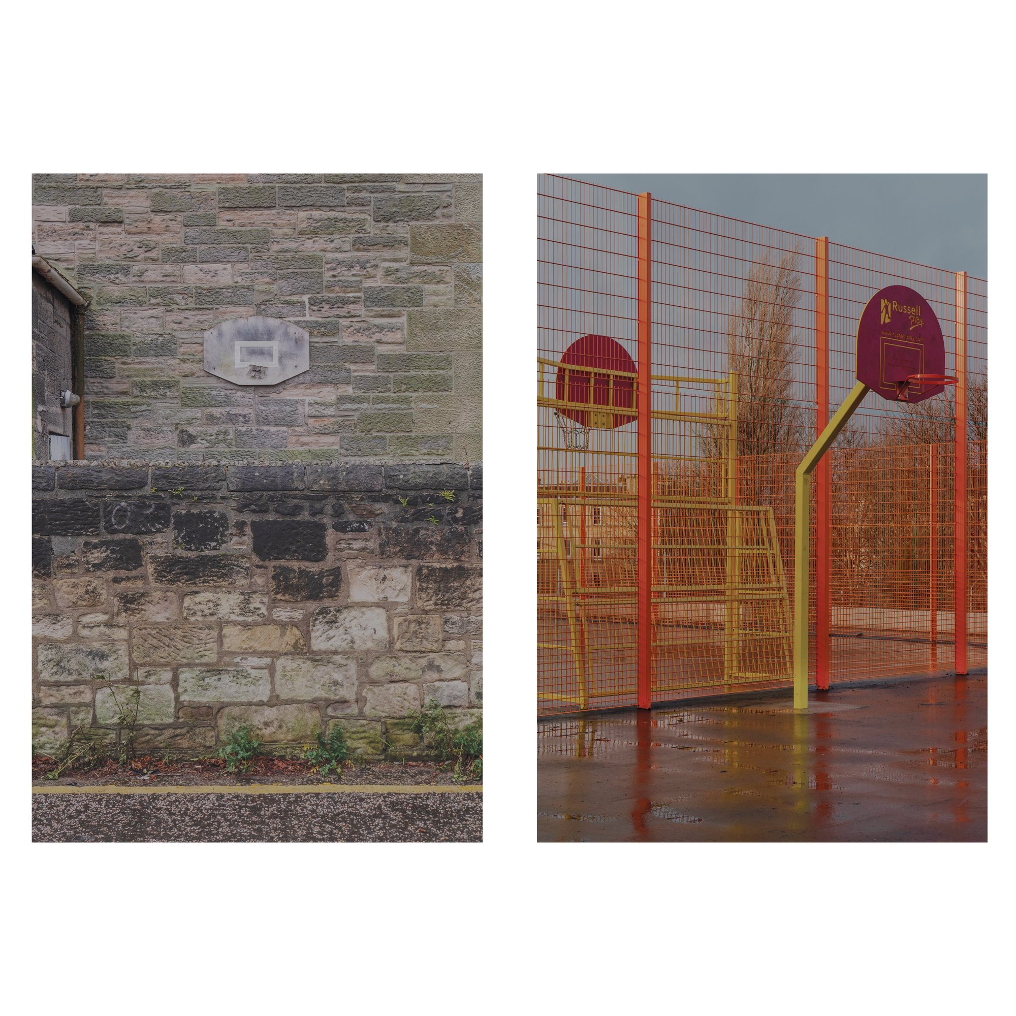 Each hoop was chosen for being quotidian or entirely ordinary; the vast majority of images were shot on the same camera with a 50mm lens and using available light. All of the images in this volume were shot in Scotland. There are few people in these images, emphasising the sense of otherness I aim to portray. This is further reflected in the choice of paper, an uncoated recycled stock lending the images a hazy, washed-out aesthetic.